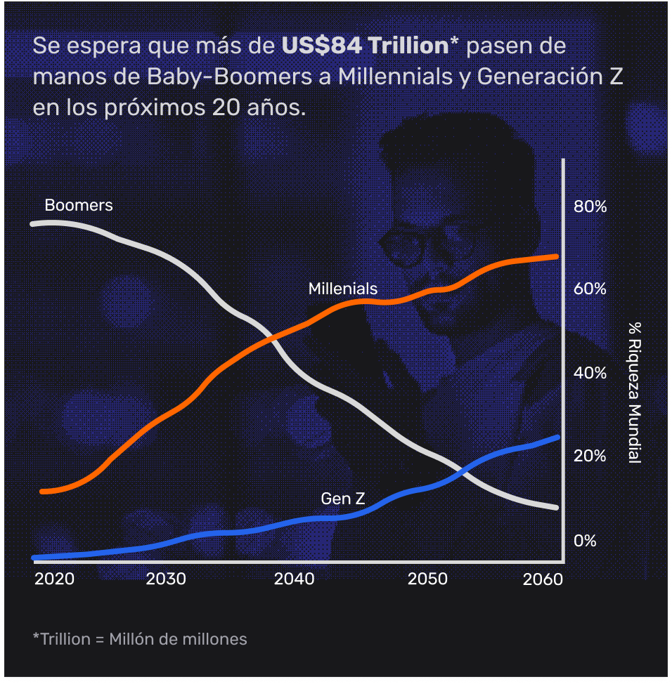 Mientras tanto, el mundo de las inversiones está cambiando radicalmente. En pocos años, Millennials y Gen Z controlarán la mayor parte del capital invertido a nivel global. Y a diferencia de generaciones anteriores, ellos no confían en bancos ni en fondos tradicionales. Prefieren lo digital, lo ágil, lo simple.