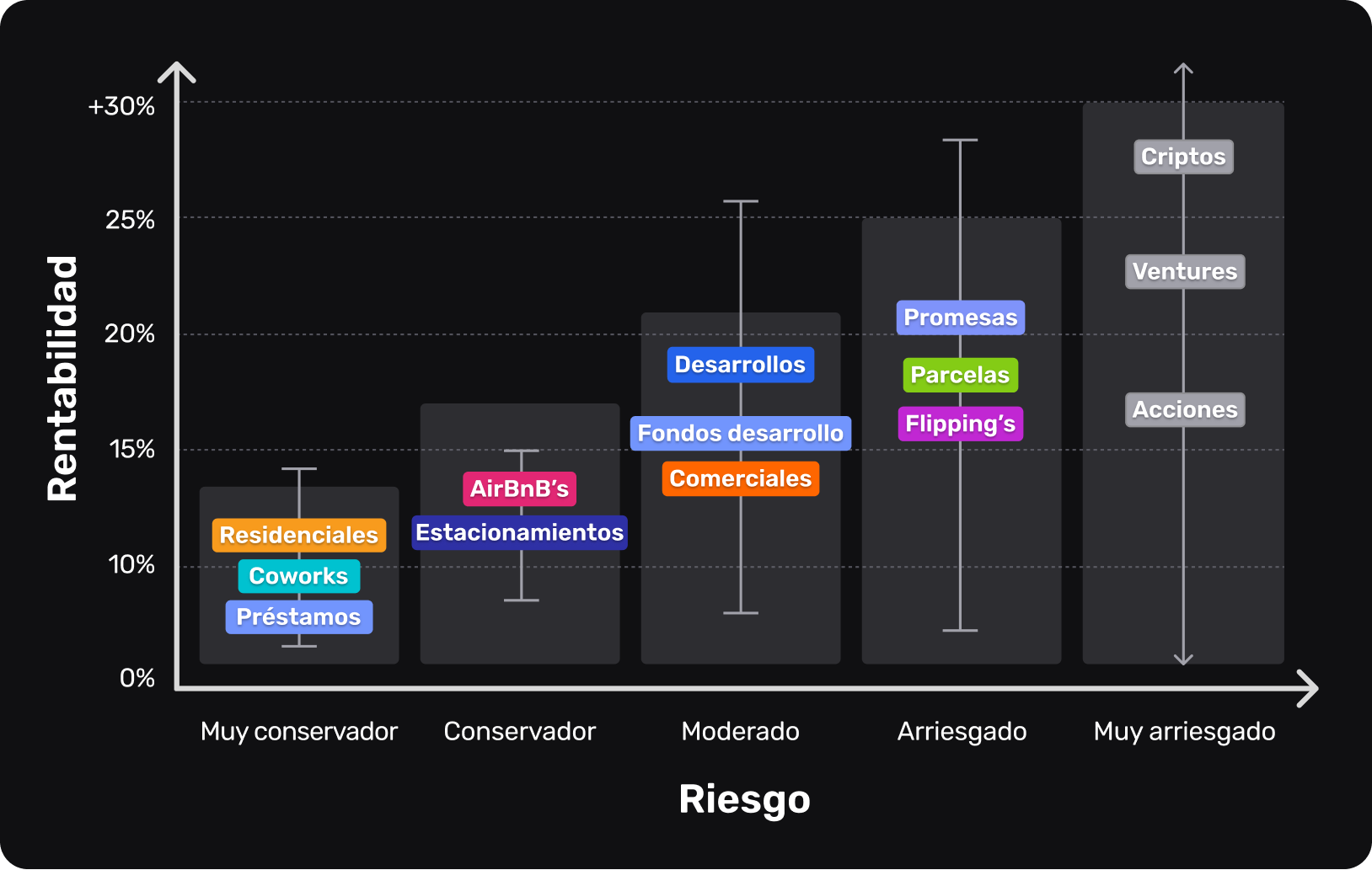Todo esto está respaldado por activos de verdad —ladrillos— con menor riesgo que otras inversiones inmobiliarias o financieras. Tú eliges la propiedad, fijas el precio de salida desde el inicio y accedes a rentabilidad desde el primer mes, en un modelo probado y creciente: el rent-to-own, donde el arriendo es el camino hacia la compra.